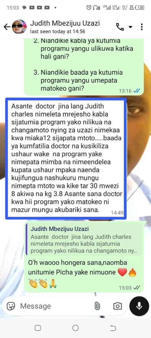 Dkt. Mzamilu ni mtaalamu mahiri wa tiba asili ambaye kwa miaka kadhaa sasa ameendelea kuwasaidia wanawake wengi kupata watoto baada ya miaka mingi ya kusubiri kwa maumivu na matumaini.
